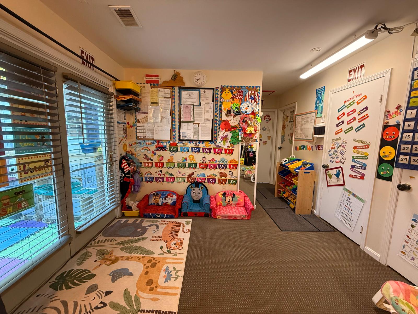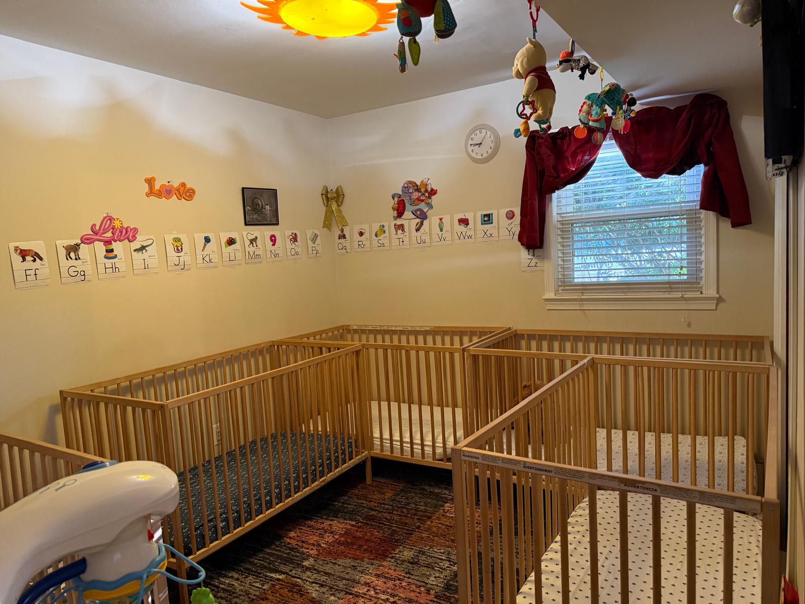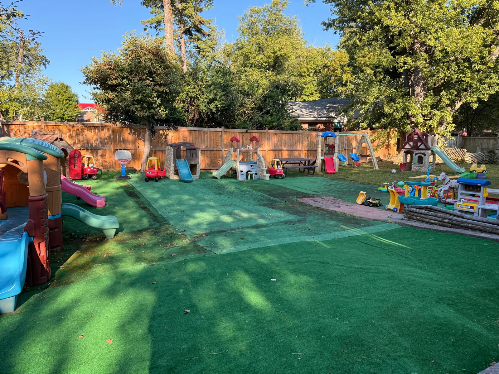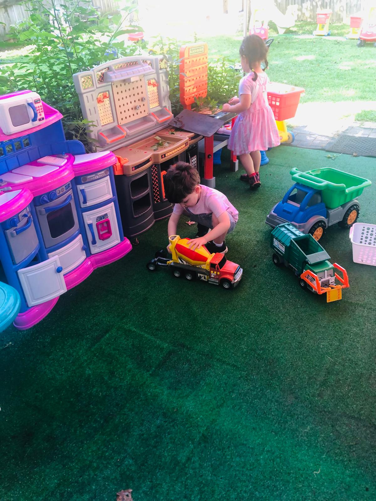 Every corner of our daycare is thoughtfully designed to inspire curiosity and joyful learning. Our space is meticulously organized with labeled areas and diverse activity stations, encouraging independence and exploration. We actively incorporate rich sensory experiences using a variety of materials – from soft textures to sturdy blocks and engaging water play – all crafted to enhance fine and gross motor skills. Vibrant wall decor and educational posters transform our rooms into an immersive learning landscape, sparking imagination and discovery. And for boundless outdoor adventures, our expansive and interactive backyard awaits, offering plenty of room for active play and exploration.